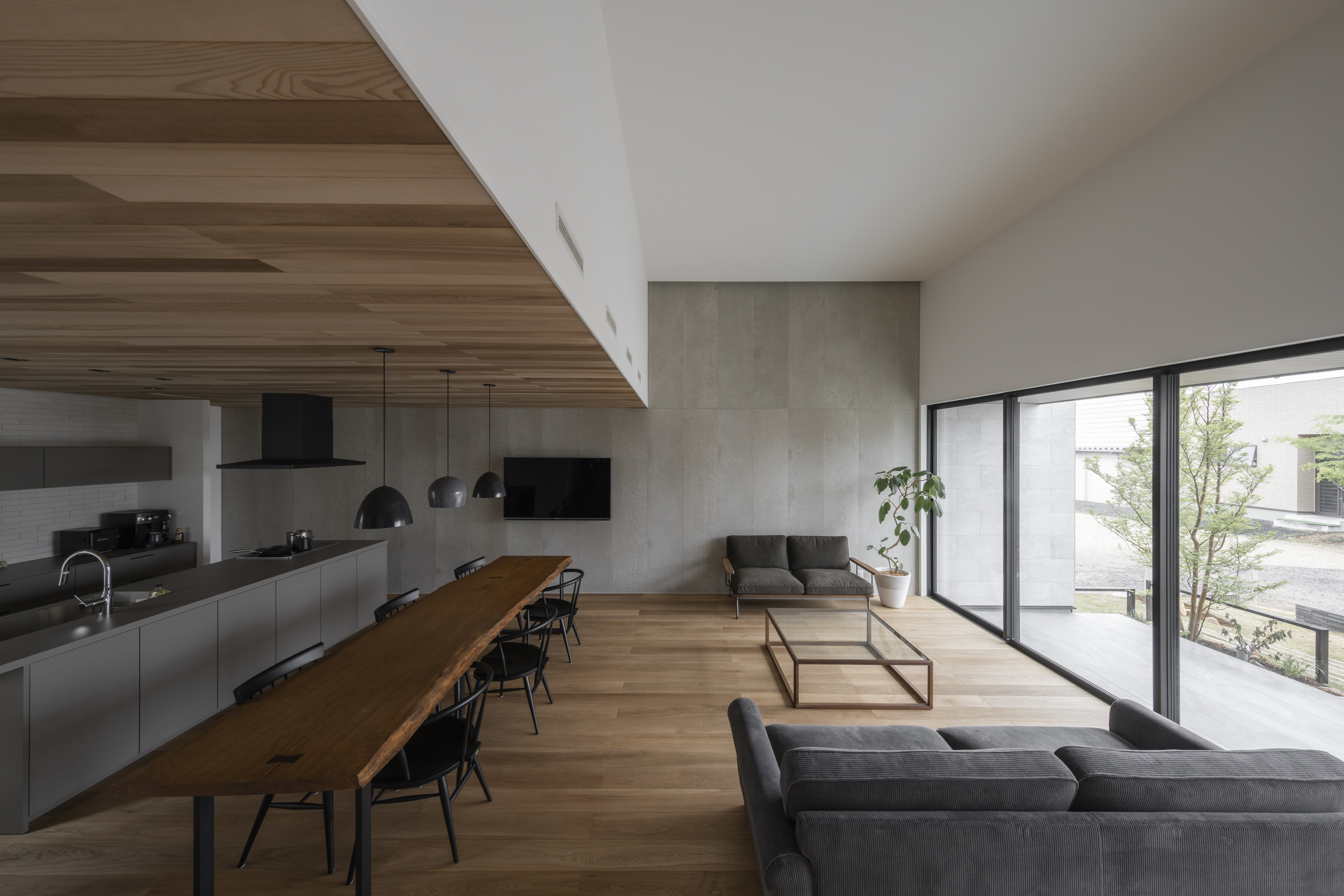 高強度金物工法により、開放感あふれる大空間を実現しながら、高断熱・高気密・全館空調で一年中快適な室温を保ちます。